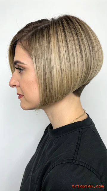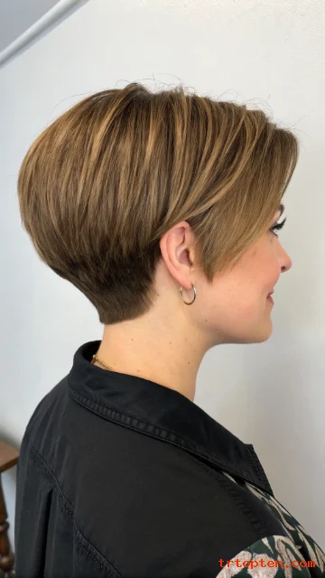 Ask for layered crown volume with a nape that lands at the top of the neck. Blow-dry the crown upward and smooth the nape downward.