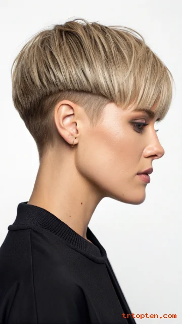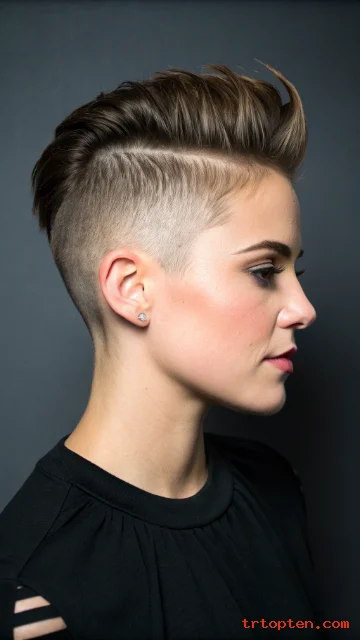 This look pairs a shaved or very short undercut with a layered top. The contrast makes the top layers stand out more.