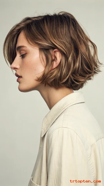 A shaggy bob uses short layers to create texture and movement. The look feels playful and modern.