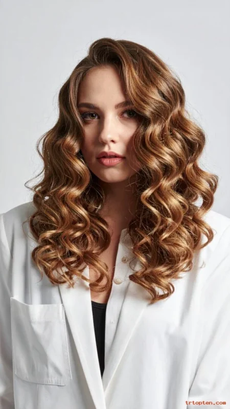 Blow-dry with root lift at the crown, then curl the front pieces away from the face. Shake out the curls and pinch the ends for separation. This style suits thick hair and medium hair. It also flatters neck lines because it shows the nape area.