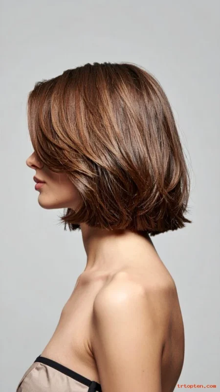 Backcomb lightly at the crown and smooth the surface with fingers. Spray texture mist and pinch sections for a soft lift. This style suits flat crowns and fine hair. It also gives a fresh look when your bob grows out.