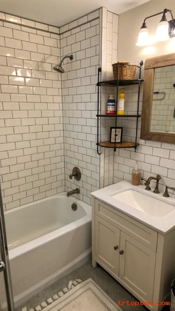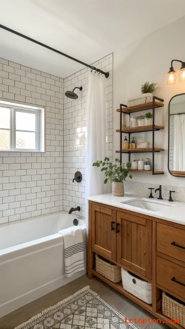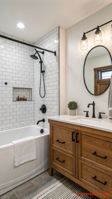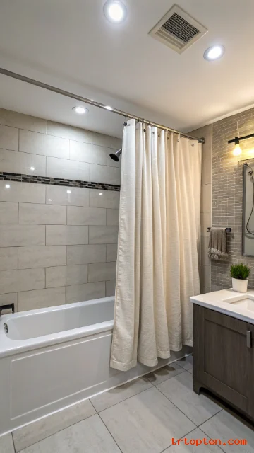 Pair it with a textured curtain for softness. Keep hardware minimal. Add a recessed light above the tub for a bright wash.