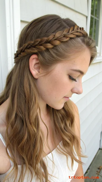 You pin the braid across the head like a headband. You leave the rest of the hair down and wavy.