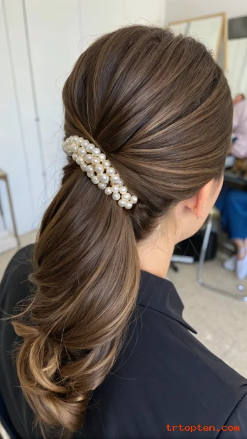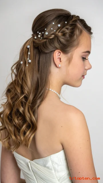 Pearl pins give instant prom energy without hard styling. You twist two small side sections back toward the center.