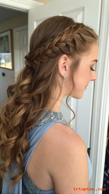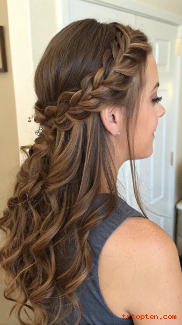 You curl the rest of the hair for a soft finish. You keep the braid loose enough to look full but not messy.