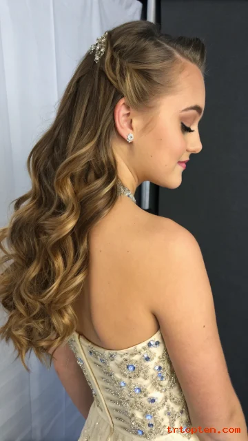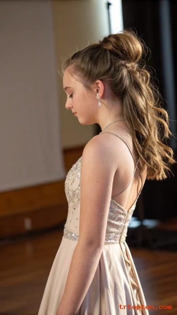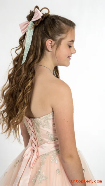 A ribbon bow adds a sweet prom detail and looks great in photos. You style your hair in loose waves first so the look feels soft.