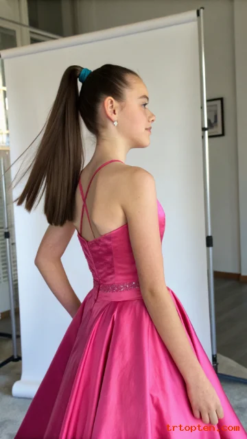 You can keep it smooth or add curls to the ends for more glam. You use matching elastics so the look stays polished.
