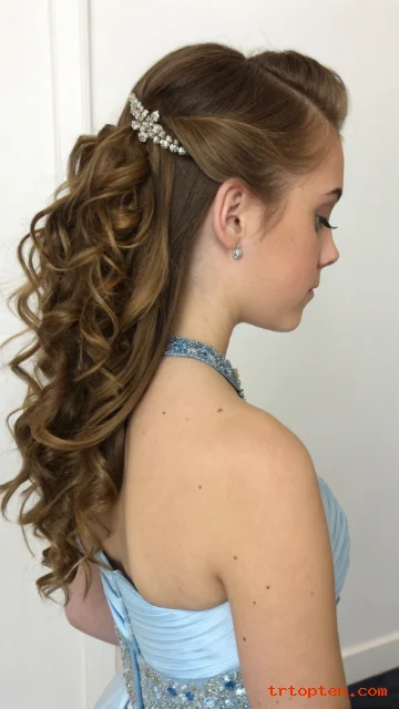 You balance the look with a sparkly barrette or pearl clip. You set the curls with flexible hairspray.