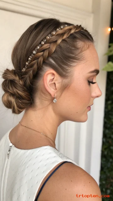 A braided side piece makes a low bun look detailed and elegant. You braid a small section from one side near the front.