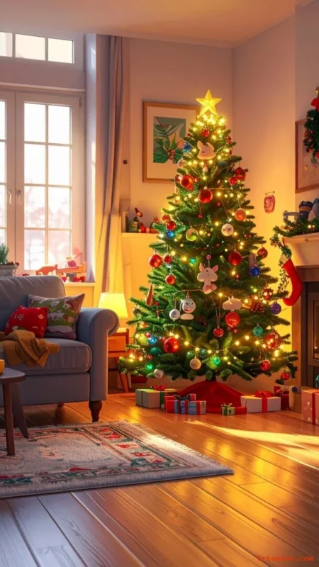 Use bright shatterproof ornaments and playful character accents. Keep the tree safe and cheerful for family spaces.