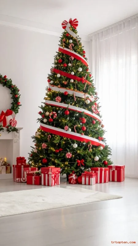 Use red-and-white stripe ribbon to mimic candy cane swirls. Add peppermint ornaments to match the theme.
