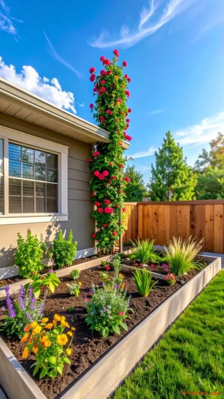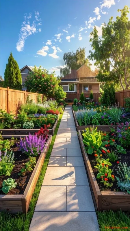 Use raised beds or neat rows to keep the look clean. Mix edibles with flowers so the yard still feels ornamental from the street.
