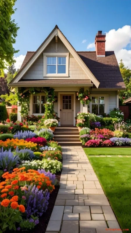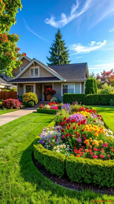 Choose long-blooming flowers so the yard stays colorful longer. Add a simple edging line so the look stays tidy and not wild.