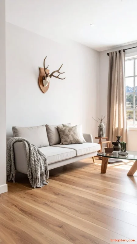 Use faux antlers in a small space so the room stays light and ethical. Pick a smaller wall mount or a sculptural piece on a shelf.