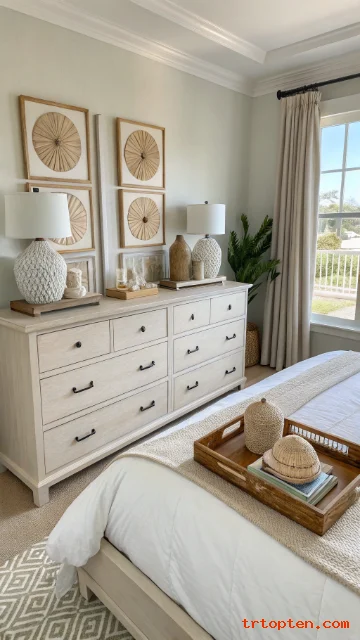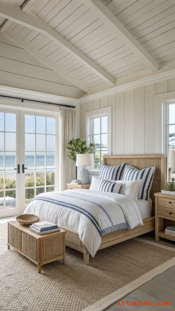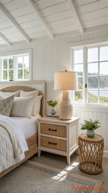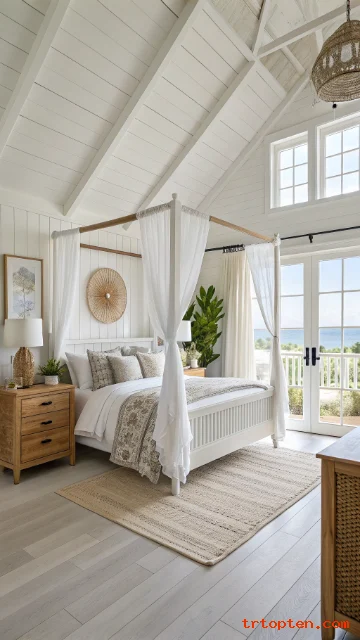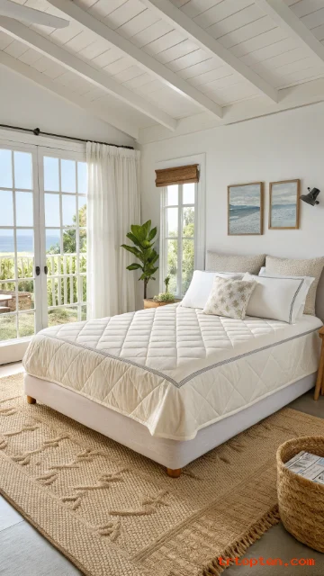 Focus on breathable bedding, light colors, and natural textures, and your space will feel like summer every day. Save your favorite ideas, use the image prompts to plan your look, and enjoy a bedroom that feels fresh from morning to night.