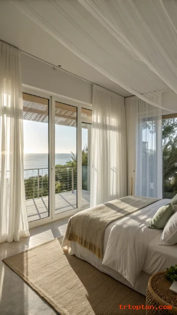 Sheer curtains soften harsh light and keep privacy while still letting sunlight in. They make the room feel taller and airier.