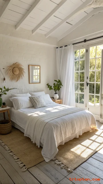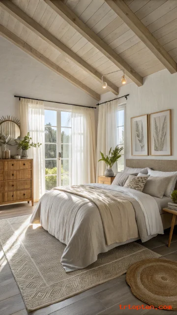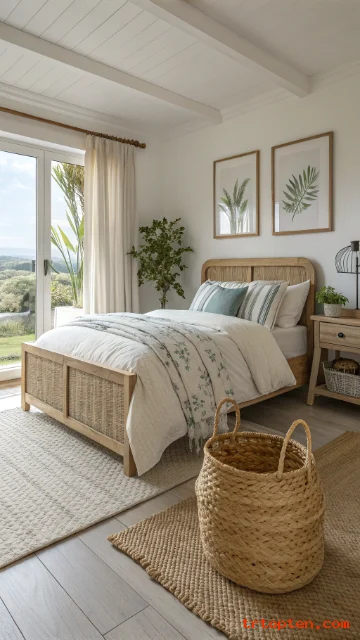 Focus on breathable bedding, light colors, and natural textures, and your space will feel like summer every day. Save your favorite ideas, use the image prompts to plan your look, and enjoy a bedroom that feels fresh from morning to night.