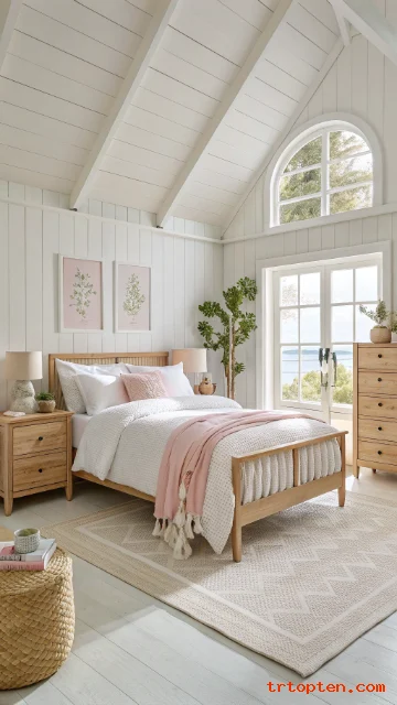 Pick a base color like white or cream, then choose two accents like light blue and sand. Repeat those colors across bedding, art, and small decor. Remove items that do not match your palette. This step makes the room feel instantly calmer and brighter.