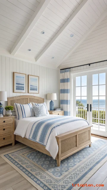 Use striped pillow covers or a striped throw at the foot of the bed. Choose navy and white or soft blue and white. Keep other patterns minimal. Repeat the stripe color in one decor item for balance.