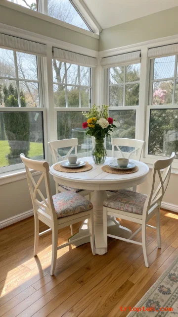 Turn part of your sunroom into a sweet breakfast corner. A small bistro table and two to four chairs fit nicely in a bright spot.