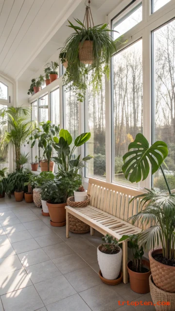 Turn your sunroom into a mini indoor garden for a fresh and lively look. Group potted plants of different heights along the windows and in empty corners.