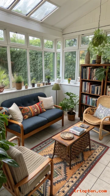 Use candles and warm lighting to support the snug feeling. This setup turns your sunroom into a true four season room.