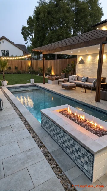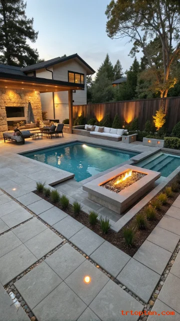 A sunken lounge pit feels cozy and high-end. It creates a social zone separate from the water. It also adds depth to flat yards.