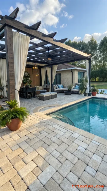 Place the pergola parallel to the pool for clean sightlines. Add outdoor curtains for privacy and softness. Use a ceiling fan to keep air moving.