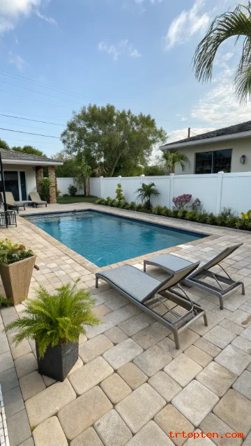 Choose one paver style and keep patterns simple. Add two quality loungers instead of many cheap pieces. Use large planters to bring in greenery fast.