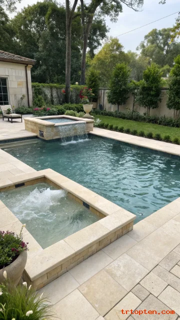 Raise the spa slightly so it becomes a focal point. Use matching tile so both bodies of water feel connected. Add a spillway from the spa into the pool for sound.