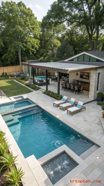 A pool and spa combo gives you two experiences in one yard. You can cool down, then warm up right after. It also boosts the look of the backyard.