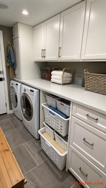 Even a small counter space makes laundry feel easier. It gives you a spot for baskets and a neat workflow.