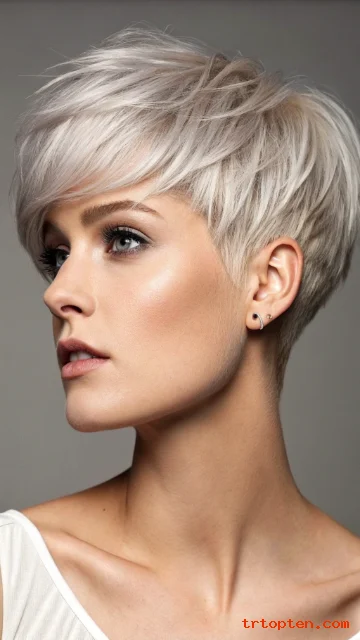 This haircut highlights the eyes and cheekbones. It works well for people who want a bold change with low daily effort.