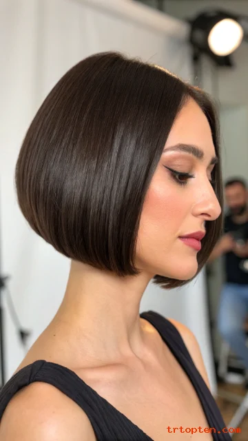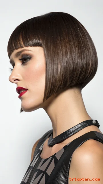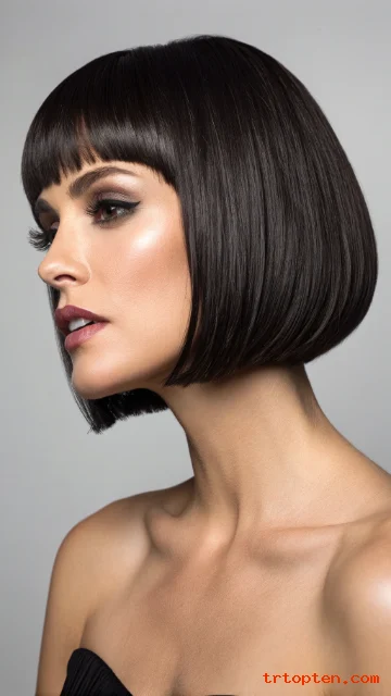 A blunt cut with micro bangs is bold and fashion-forward. The short bangs create a strong focal point above the eyes.