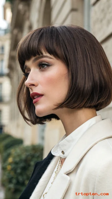 A French bob is short, elegant, and full of character. It usually sits near the jaw and often includes soft bangs.