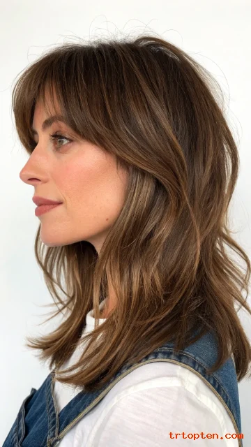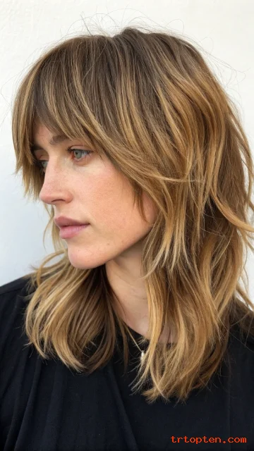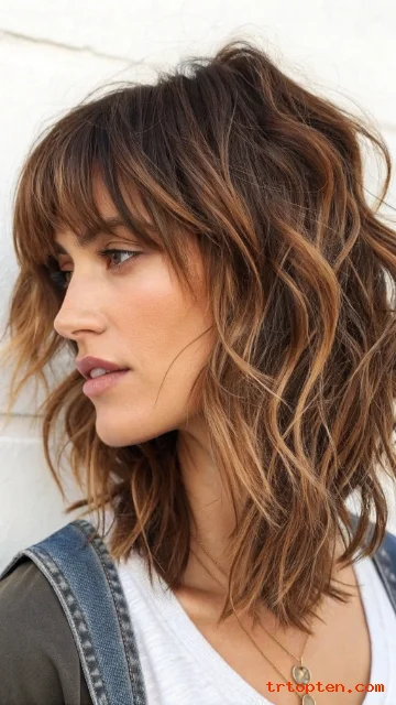 Tousled bangs look slightly messy in a good way. A shag cut supports that relaxed vibe with textured layers. This style looks cool even on busy days.