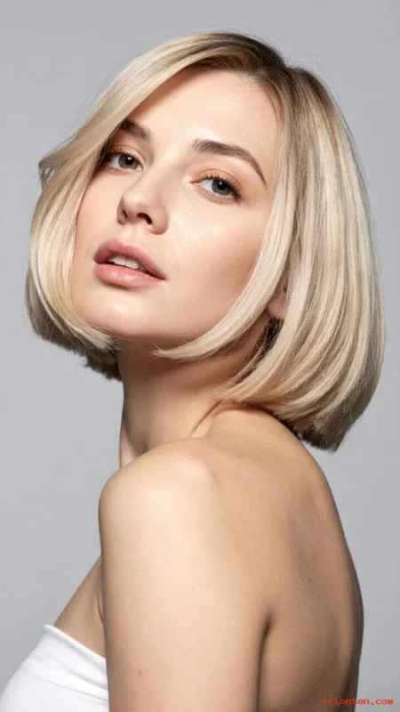 Keep the hair sleek to show the angle, or add soft waves for texture. Use a heat protectant and finish with shine spray. This cut suits oval faces and round faces. It also adds interest without extreme styling.
