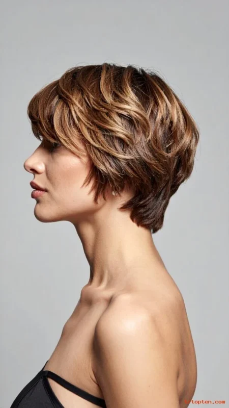 Do short haircuts look good with highlights? Yes, highlights show movement and shape. Soft blended color looks natural and trendy.
