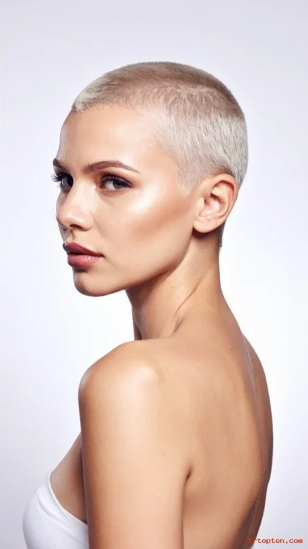 A buzz cut feels bold and modern. A soft edge keeps the hairline looking gentle and clean.