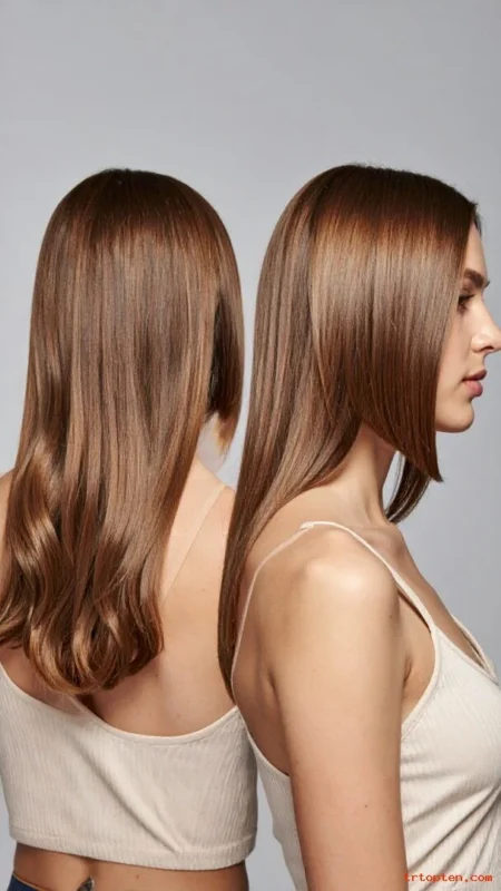 Ask for blended highlights and a natural root shadow. Style with loose waves and finger separation to show the color shifts. This idea suits brunettes and blondes. It also makes a simple bob look more trendy.