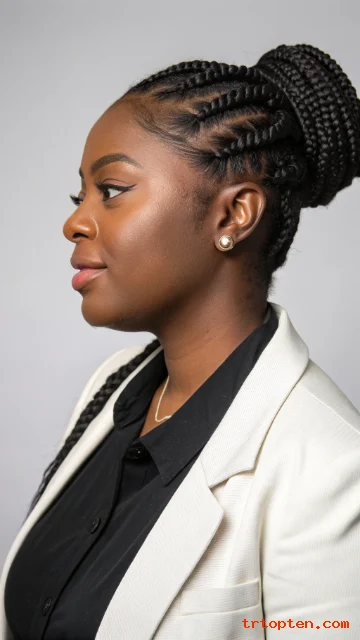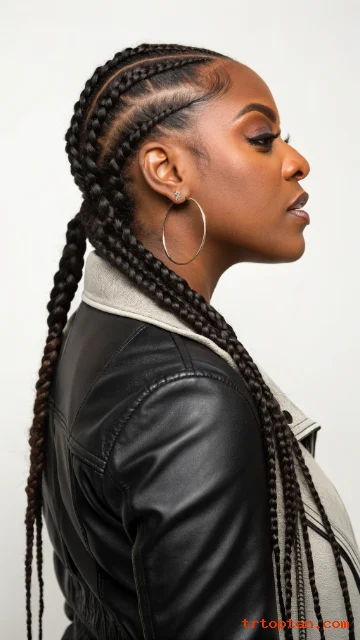 Ask for a deep side part for more impact. Keep the braid sizes equal so the style stays symmetrical. Use edge control to shape the hairline in smooth curves.
