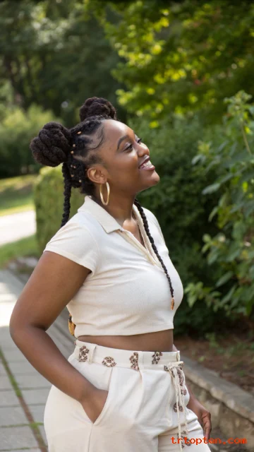 Space buns bring a fun, youthful vibe. You keep the two-braid base and finish with two buns. It feels trendy and playful.