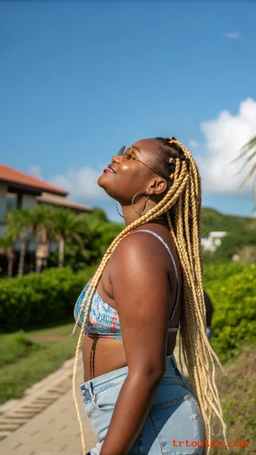 Blonde tips give a bright, trendy finish. The color hits at the ends, so it feels subtle but fun. It also makes the braids look lighter.