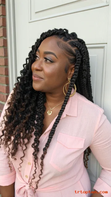 Curly ends soften the finish and add bounce. The curls make the braids feel more playful. This look gives a nice mix of neat and fluffy.