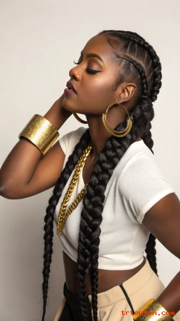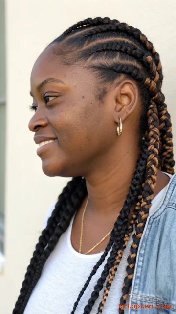 This style pairs well with streetwear and athleisure. You can wrap the braids into a crown for events. You can also add a pop-color extension for contrast.