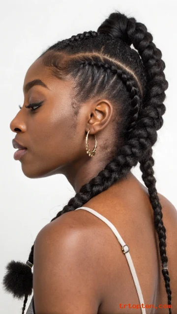 Ask for small front sections that cross before joining the braids. Keep the crossing tight and smooth. Set the front with gel so it stays clean.