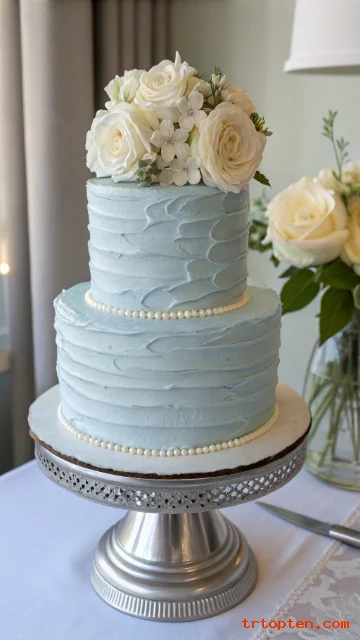 Dusty Blue Cake With White Flowers