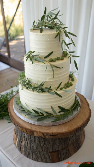 White Cake With Fresh Greenery Wrap