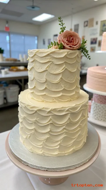 Scalloped piping brings a vintage bakery style. It looks detailed without needing extra decor.