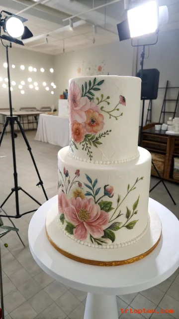 Hand-painted florals look artistic and personal. A two tier cake gives enough space for a clear floral scene.